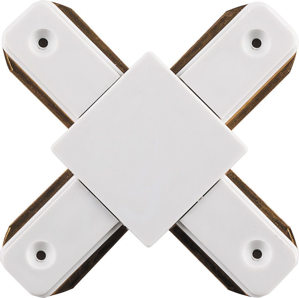 Комлпектующая (соединитель, коннектор, заглушка, подвес), которую используют Однофазные трековые системы производителя Feron линейка LD1002 Коннектор Х-образный для шинопровода , белый, LD1002 для CAB1003 и CAB1005