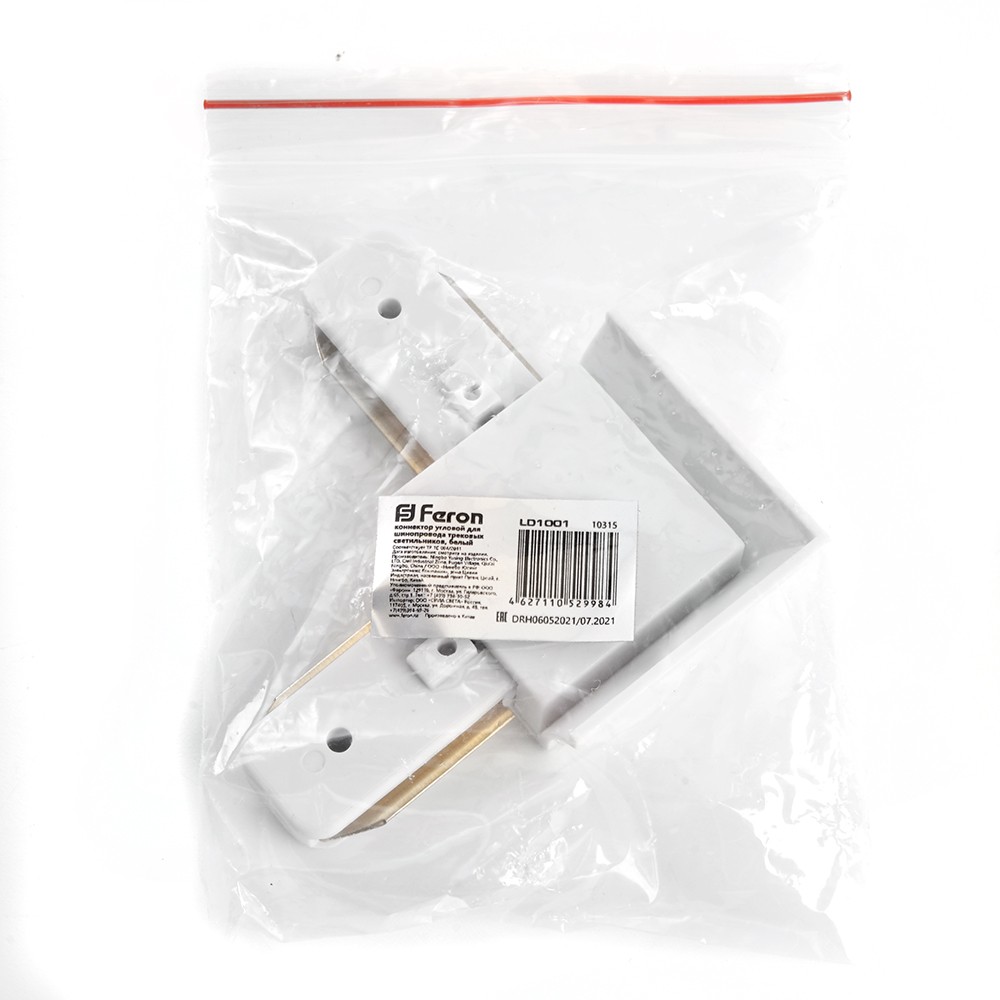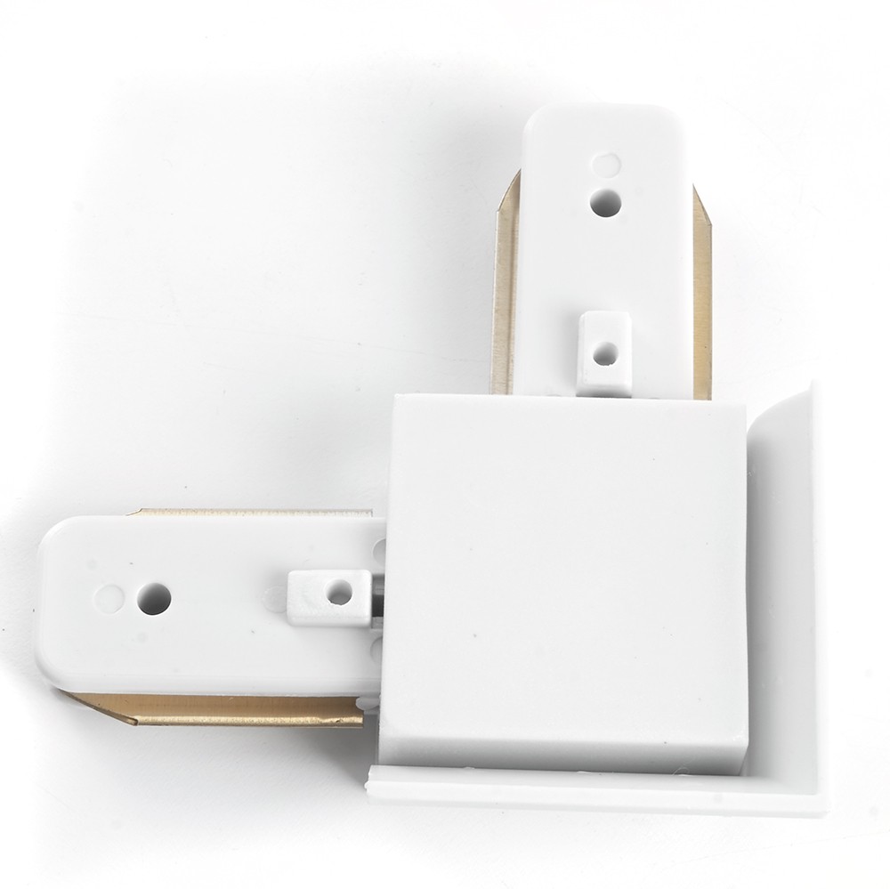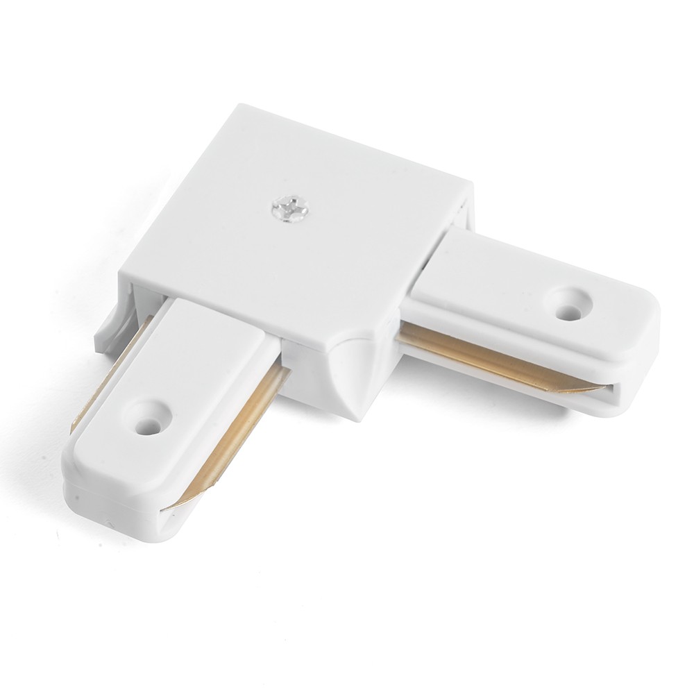 Комлпектующая (соединитель, коннектор, заглушка, подвес), которую используют Однофазные трековые системы производителя Feron линейка LD1001 Коннектор угловой для шинопровода, белый, LD1001 для CAB1003