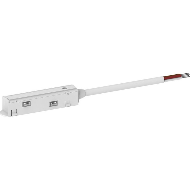 Комлпектующая (соединитель, коннектор, заглушка, подвес), которую используют Магнитные трековые системы производителя Feron линейка LD3000 Соединитель-коннектор для низковольтного шинопровода, белый, кабель 0,5м LD3000