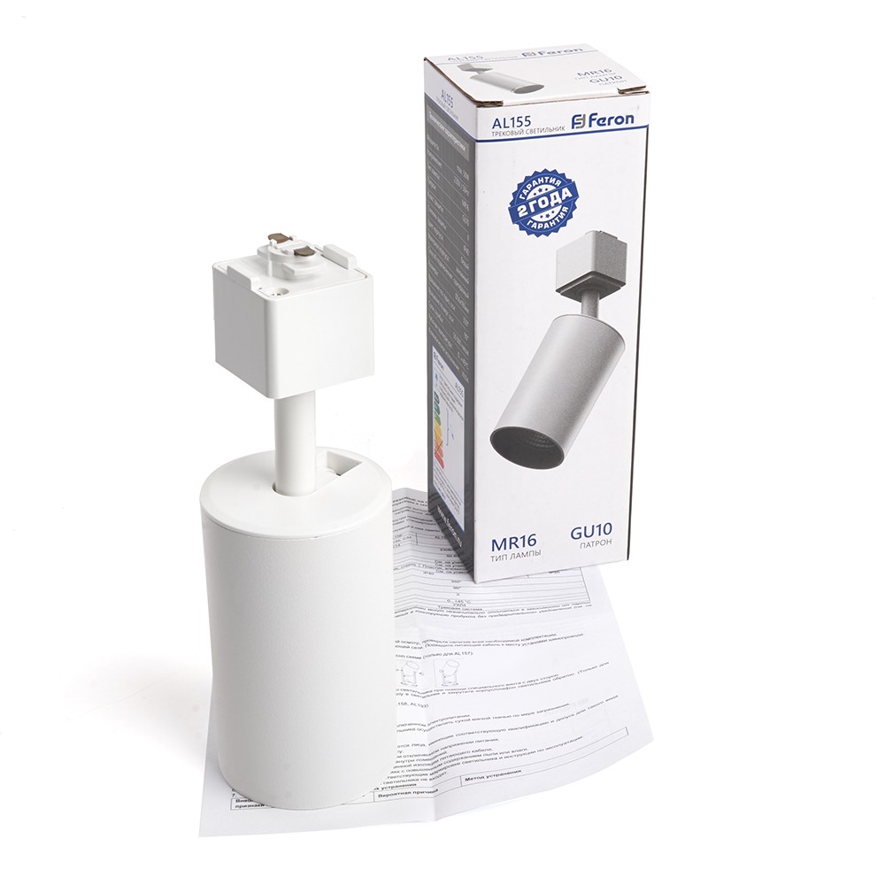 Трековые светильники AL155 TM FERON артикул 32473 предназначены для использования с лампами типоразмера MR16 и цоколем GU10.