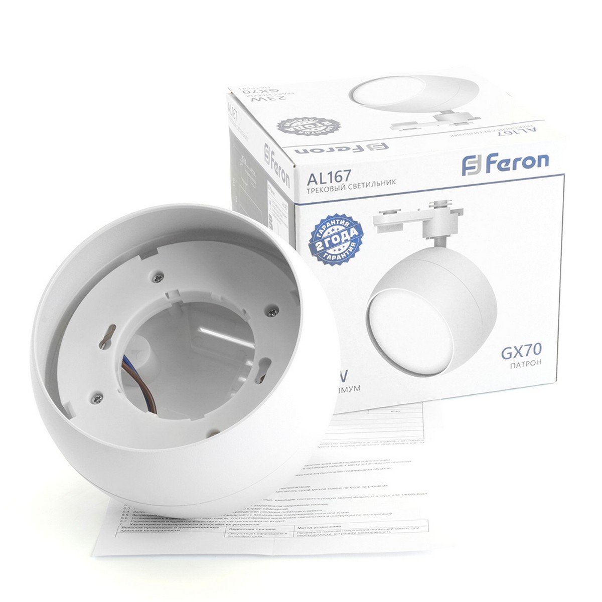 Светильник Feron AL167 трековый однофазный на шинопровод под лампу GX70 белый 48550 по цене 416 руб. с фотографией и техническими характеристиками. Для покупки товара нажмите кнопку "Купить" и перейдите в корзину или позвоните по телефону 8 (495) 585 32 60 или 8 (800) 222 23 53.