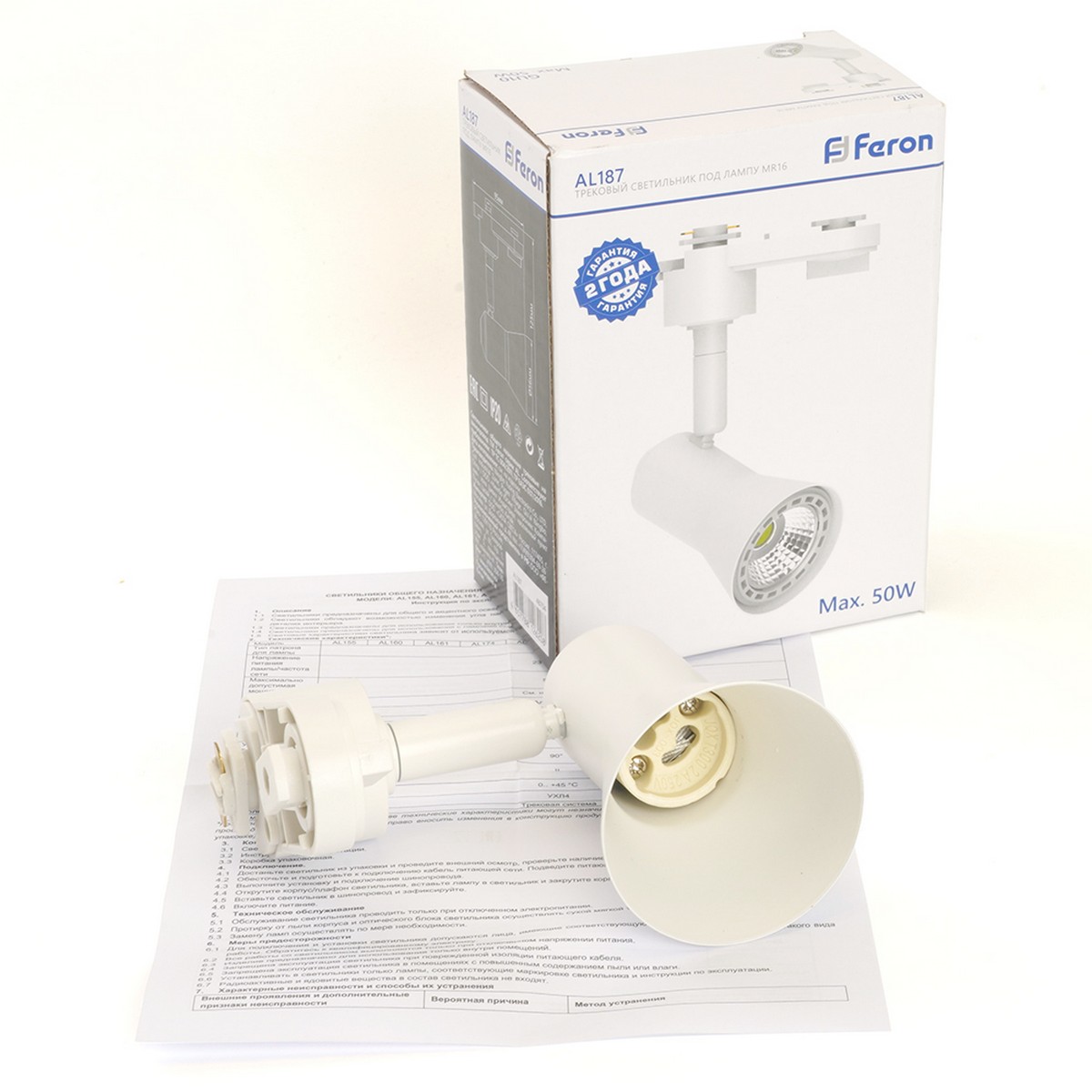 Светильник Feron AL187 трековый под лампу GU10 белый 48704 по цене 128 руб. с фотографией и техническими характеристиками. Для покупки товара нажмите кнопку "Купить" и перейдите в корзину или позвоните по телефону 8 (495) 585 32 60 или 8 (800) 222 23 53.