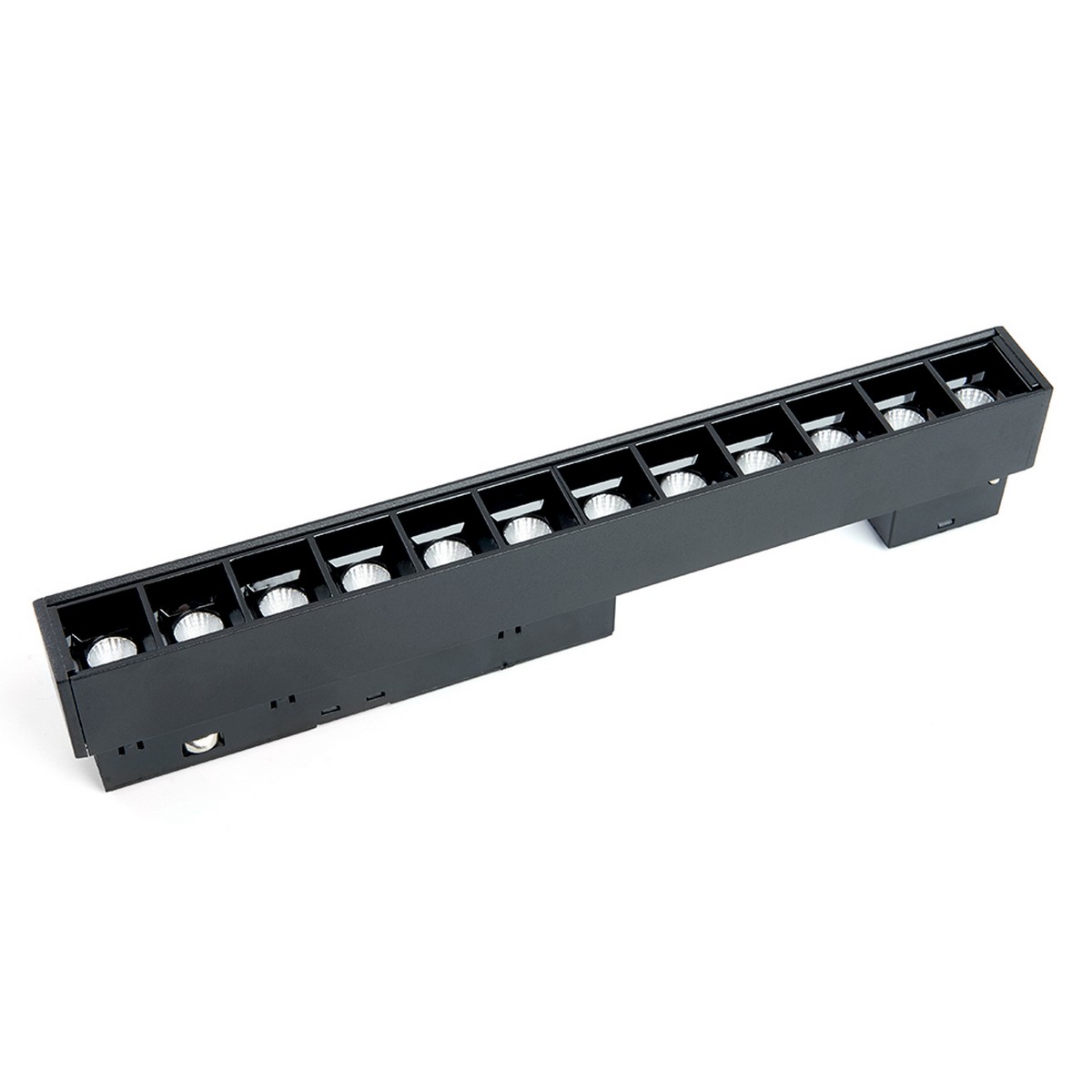Светильник можно свободно перемещать по шинопроводу, что позволяет настраивать освещение под конкретные задачи и зоны. Это делает его идеальным выбором как для основного, так и для декоративного освещения. Модель оснащена высокоэффективными встроенными LED-диодами, обеспечивающими яркость до 1080Lm при напряжении 48V. Корпус выполнен из алюминия, а рассеиватель из поликарбоната, что гарантирует долговечность и надежность.