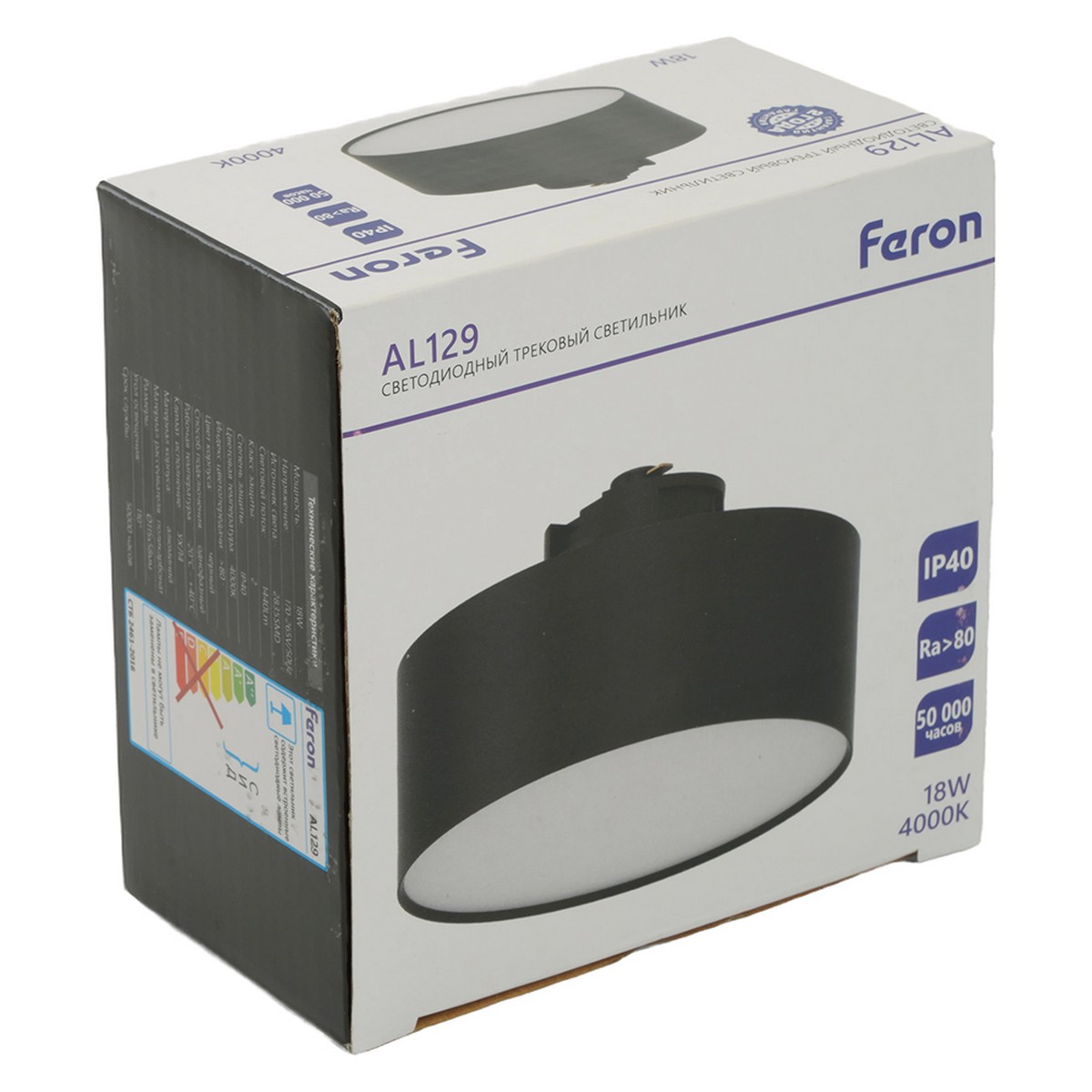 Светодиодный светильник Feron AL129 трековый на шинопровод 18W 4000K 110 градусов черный 51160 по цене 364 руб. с фотографией и техническими характеристиками. Для покупки товара нажмите кнопку "Купить" и перейдите в корзину или позвоните по телефону 8 (495) 585 32 60 или 8 (800) 222 23 53.