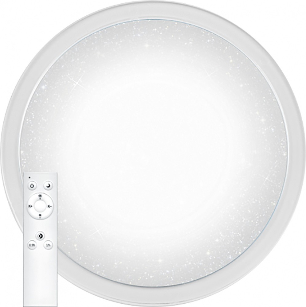 Светильник 7678/EL линии ANIX состоит из металлического основания (базы) и пластикового рассеивателя. Материал рассеивателя - высококачественный пластик марки PMMA 2.0 белого цвета с матовой поверхностью. Пластик обеспечивает светильнику равномерное рассеивание и хорошее светопропускание. Форма плафона: круглая, декорирована рельефом из пластика в виде узора белого цвета. Степень защиты IP43 позволяет использовать светильник в определенных зонах влажных помещений. В комплект входит заменяемый LED модуль с линзами, мощностью 70Вт, которая соответствует лампе накаливания 610Вт. А также пульт ДУ (с креплением на стену), с помощью которого осуществляется плавное изменение цветовой температуры 3000-6000К, изменение яркости, переход в режим переключения теплого/белого/холодного/ночного света. Светильник имеет функцию "память".