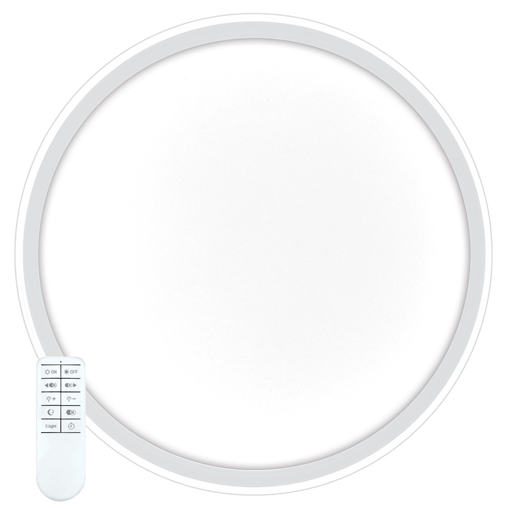 Светильник 7671/DL линии VAXIN состоит из металлического основания (базы) и пластикового рассеивателя. Материал рассеивателя - высококачественный пластик марки PMMA 2.0 белого цвета с матовой поверхностью. Пластик обеспечивает светильнику равномерное рассеивание и хорошее светопропускание. Форма плафона: круглая, декорирована ободом из пластика, рельефной структуры, цвет хром. Степень защиты IP43 позволяет использовать светильник в определенных зонах влажных помещений. В комплект входит заменяемый LED модуль с линзами, мощностью 48Вт, которая соответствует лампе накаливания 440Вт. А также пульт ДУ (с креплением на стену), с помощью которого осуществляется плавное изменение цветовой температуры 3000-6000К, изменение яркости, переход в режим переключения теплого/белого/холодного/ночного света. Светильник имеет функцию "память".