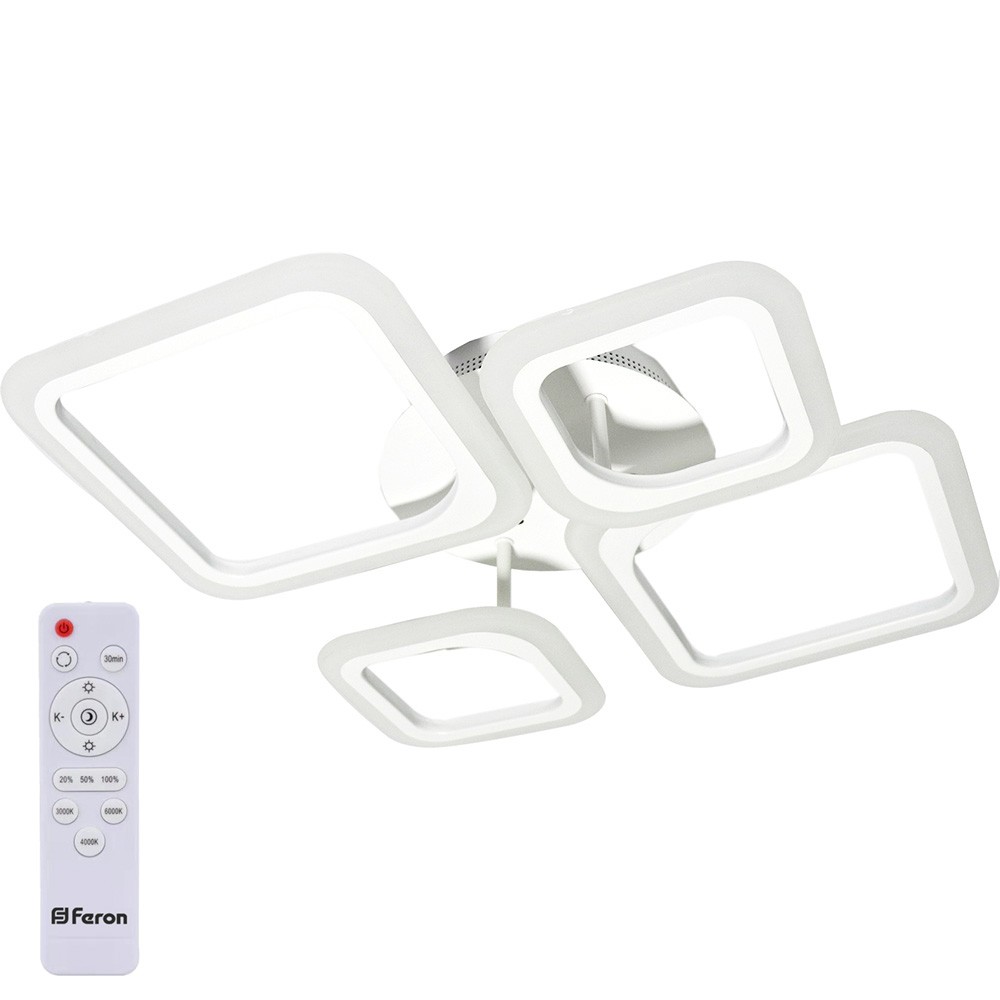 Светильник накладной светодиодный, потолочный управляемый (ДПО) FERON AL5000, 100W, 3000К-6500K (теплый-белый-дневной), 230V, 8500Lm, IP20, угол рассеивания 120°, цвет белый, корпус штампованная сталь, рассеиватель матовый пластик, серия "звездное небо", 770*770*90