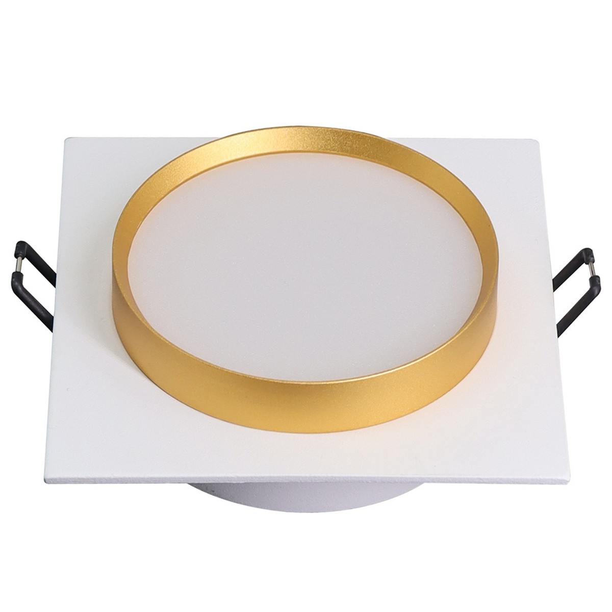 Светильник встраиваемый Feron DL507 — идеальное решение для создания основного и дополнительного освещения в интерьере. Его стильное сочетание белого и золотого цветов делает модель универсальной для различных стилей оформления. Разработанный для установки с лампами GX53 мощностью до 15W, светильник обеспечивает возможность выбора цветовой температуры в зависимости от ваших предпочтений. Матовая акриловая вставка в корпусе улучшает рассеивание света, создавая равномерный и мягкий световой поток, что делает его отличным выбором для зонирования пространства и акцентирования деталей. Компактные размеры (110x110x40 мм) и монтажный диаметр 90 мм облегчают установку, а прочный корпус из металла и акрила гарантирует долговечность. Неповоротная конструкция обеспечивает стабильное направление света, что идеально подходит для освещения помещений. Выбирая Feron DL507, вы получаете стильный и функциональный элемент освещения, который добавит уют и элегантность в ваш дом.