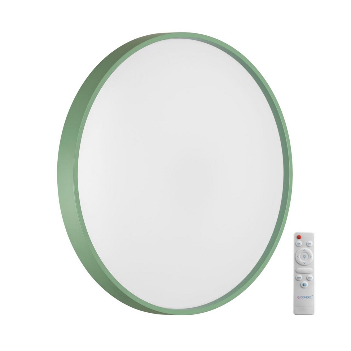 Светильник 7743/EL линии MAVIC состоит из металлического основания (базы) и пластикового рассеивателя. Материал рассеивателя - высококачественный пластик марки PMMA 2.0 белого цвета с глянцевой поверхностью, обеспечивающий светильнику равномерное рассеивание и хорошее светопропускание. Форма плафона: круглая, декорирована ободом зеленого цвета на плафоне. Степень защиты IP43 позволяет использовать светильник в определенных зонах влажных помещений. В комплект входит заменяемый LED модуль с линзами, мощностью 70Вт, которая соответствует лампе накаливания 610Вт. А также пульт ДУ, с помощью которого осуществляется плавное изменение цветовой температуры 3000-6000К, изменение яркости, переход в режим переключения теплого/белого/холодного/ночного света. Светильник имеет функцию "память".