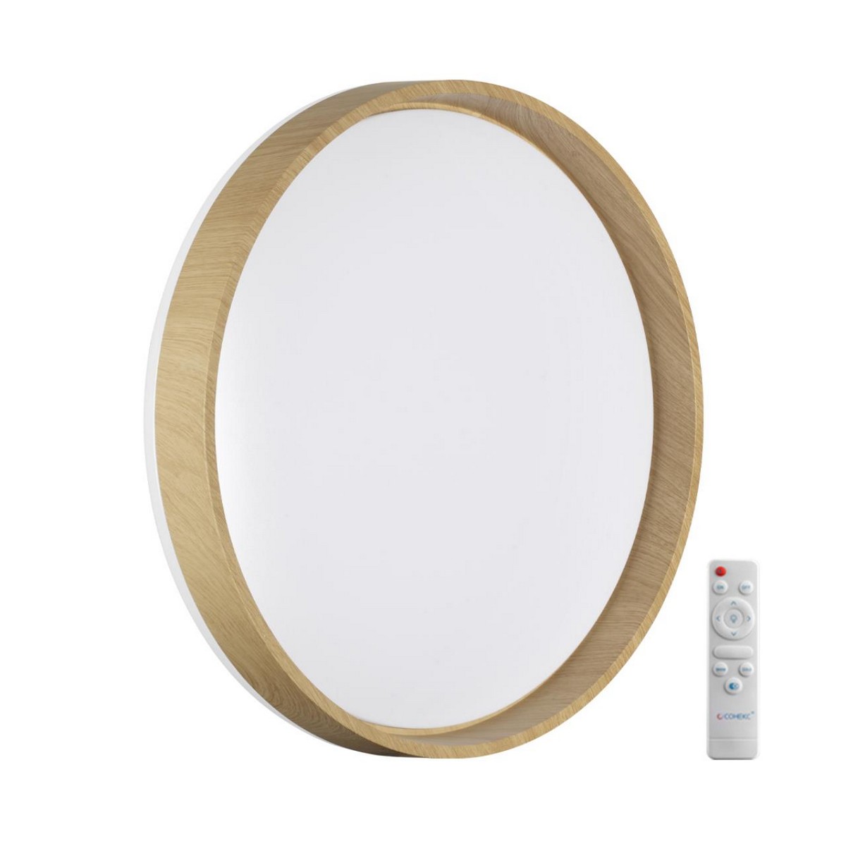 Светильник 7783/ЕL линии GABY состоит из металлического основания (базы) и пластикового рассеивателя. Материал рассеивателя - высококачественный пластик марки PMMA 2.0 белого цвета с матовой поверхностью, обеспечивающий светильнику равномерное рассеивание и хорошее светопропускание. Форма плафона: круглая, декорирована ободом из пластика, цвет сатинированное золото, имитирующее металл. Степень защиты IP43 позволяет использовать светильник в определенных зонах влажных помещений. В комплект входит заменяемый LED модуль с линзами, мощностью 70Вт, которая соответствует лампе накаливания 610Вт. А также пульт ДУ, с помощью которого осуществляется плавное изменение цветовой температуры 3000-6000К, изменение яркости, переход в режим переключения теплого/белого/холодного/ночного света. Светильник имеет функцию "память".