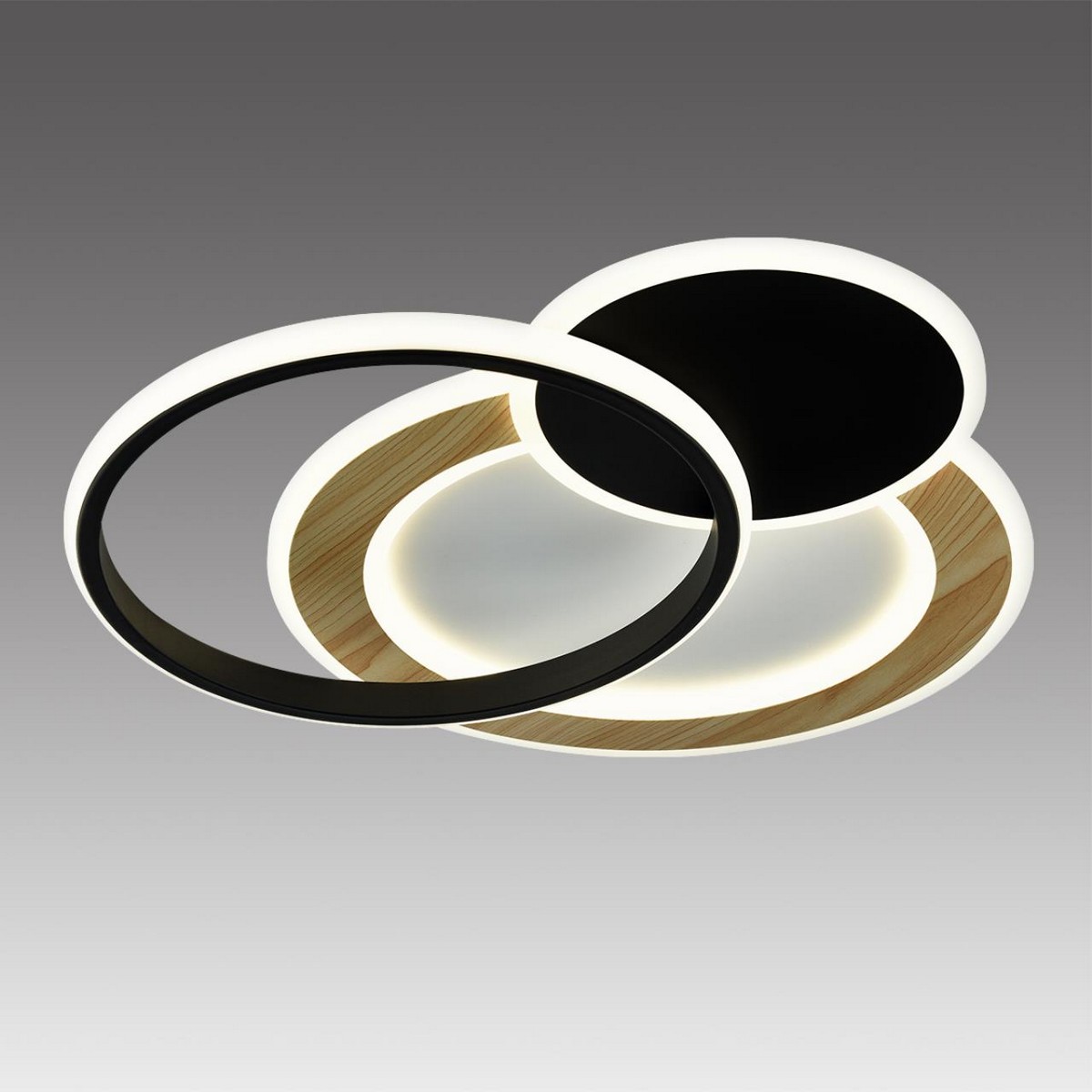 Модель линии PINE характеризуется тремя контурами освещения и сочетанием трех базовых цветов – белого, черного и цветом натурального дерева. Благодаря данному дизайну светильник является прекрасным элементом дизайна интерьера не только во включенном, но и в выключенном виде. Три контура жестко зафиксированы между собой. Светильник оснащен пультом ДУ.