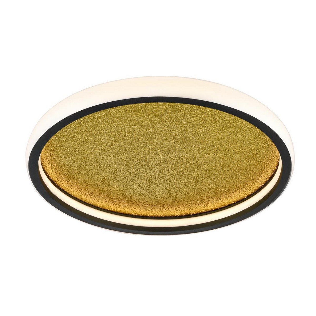 Эффект расплавленного золота на поверхности металлического основания светильника SHIMMERS - это интересный и эффектный прием декорирования светильника. Благодаря широкому светодиодному модулю, располагающемуся по контуру, светильник эффективно освещает пространство. Второй модуль, расположенный во внутренней части светильника, подсвечивает золотое основание, создавая необычные блики на его поверхности.