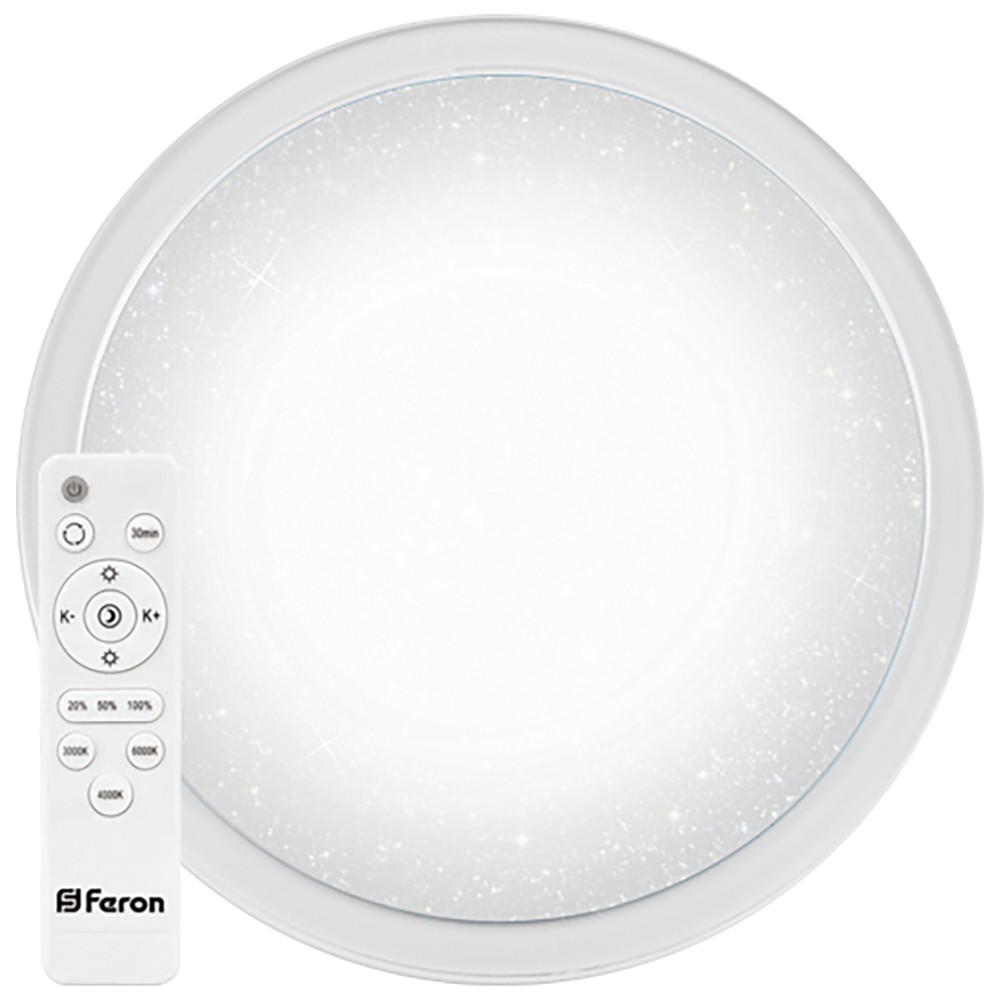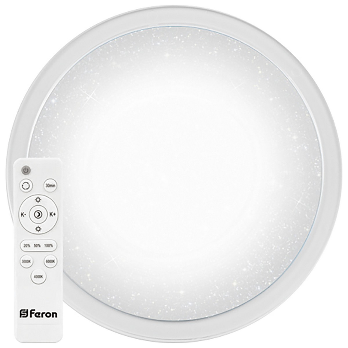 Светильник накладной светодиодный, потолочный управляемый (ДПО) FERON AL5000, 100W, 3000К-6500K (теплый-белый-дневной), 230V, 8500Lm, IP20, угол рассеивания 120°, цвет белый, корпус штампованная сталь, рассеиватель матовый пластик, серия "звездное небо", 770*770*90