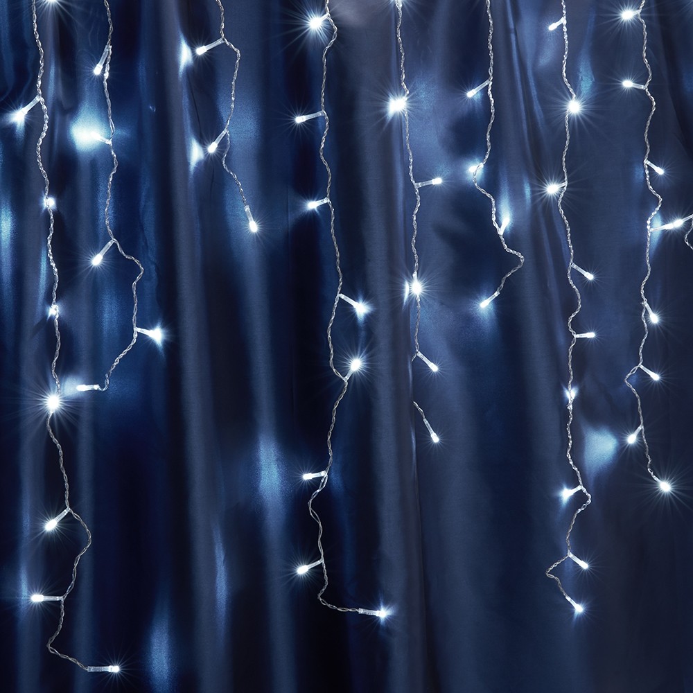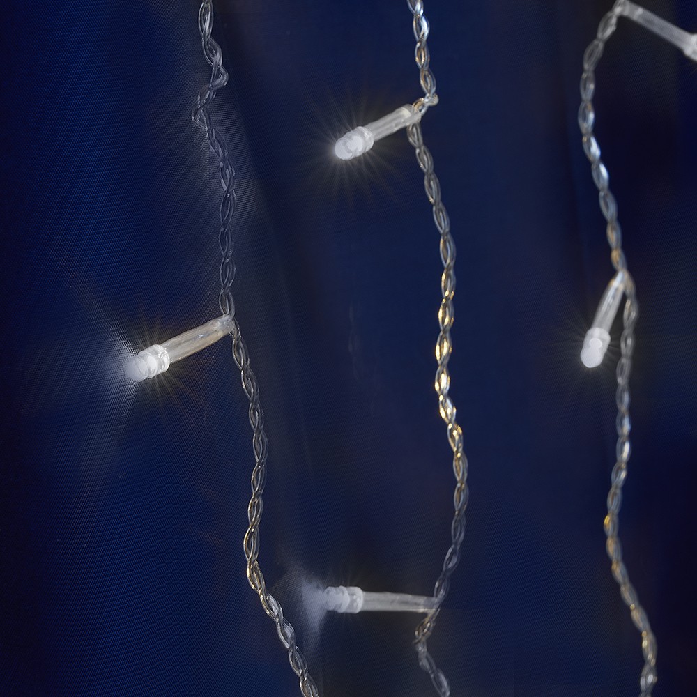 Гирлянда дождь FERON CL23, 240LED, 5000К (белый), с эффектом стробов, 5,3м+3м прозрачный шнур, расстояние между светодиодами 10см, IP44, 12W, от сети 230V, последовательное подключение до 5 гирлянд