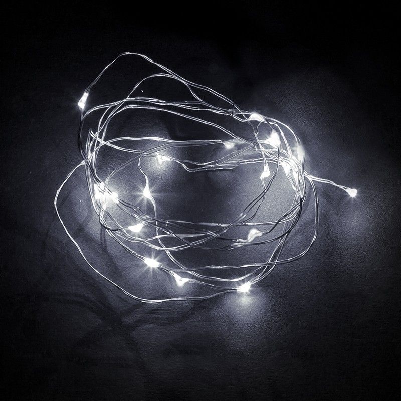 Гирлянда линейная от батареек FERON CL570, 20LED, 5000К (белый), статичная (постоянного свечения), 2м+0,5м прозрачный шнур, расстояние между светодиодами 10см, IP20, 1,2W, на батарейках 2*AA, батарейки отсутствуют в комплекте, последовательное подключение - НЕТ