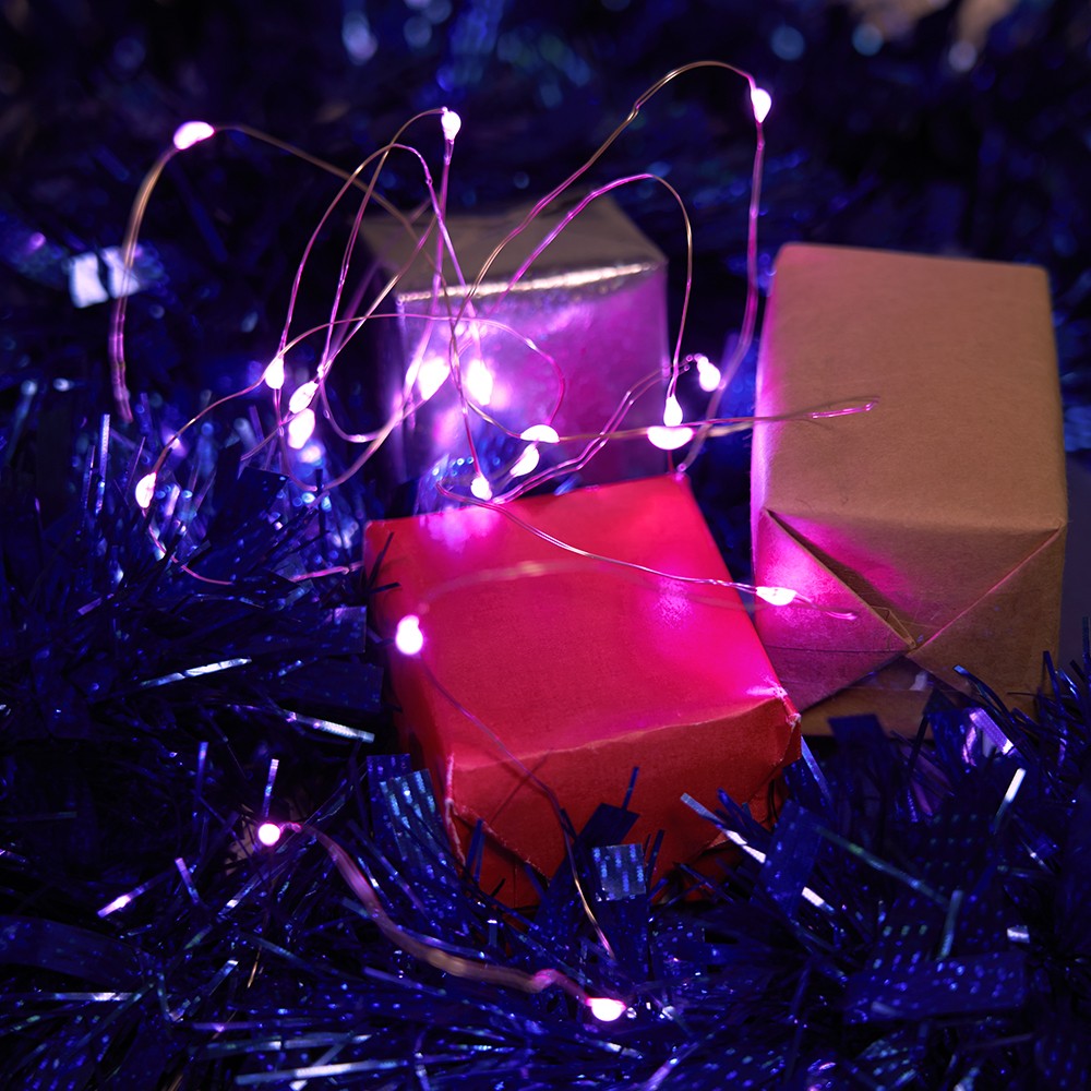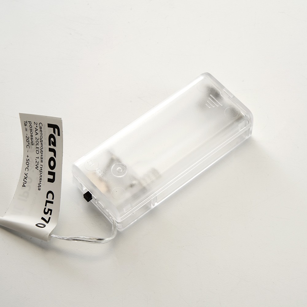 Гирлянда линейная от батареек FERON CL570 , 20LED, (розовый), статичная (постоянного свечения), 2м+0,5м прозрачный шнур, расстояние между светодиодами 10см, IP20, 1,2W, на батарейках 2*AA, батарейки отсутствуют в комплекте, последовательное подключение - НЕТ