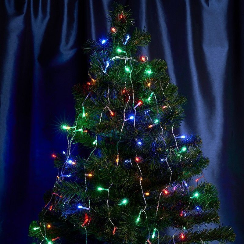 Гирлянда на елку FERON CL90, 140LED, (мультиколор), настраивается контроллером, 2м+1,5м прозрачный шнур, расстояние между светодиодами 10см, IP20, 8,4W, от сети 230V, последовательное подключение - НЕТ